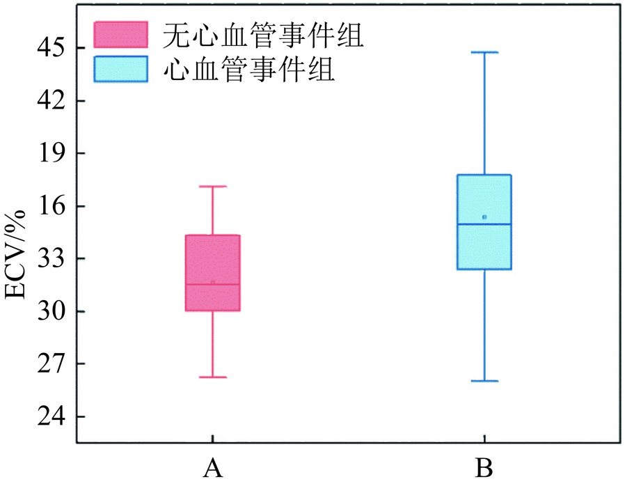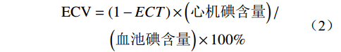 Objective: To explore the value of myocardial extracellular volume (ECV) measured using dual-energy computed tomography (CT) in preoperative risk stratification for transcatheter aortic valve implantation (TAVI). Methods: We prospectively included 71 patients who underwent CT assessment before TAVI between June 2023 and June 2024, all of whom underwent dual-energy CT-delayed enhancement scans to calculate the ECV. Based on the median ECV, the patients were divided into high-ECV and low-ECV groups. The aim was to observe TAVI surgical outcomes and early postoperative recovery among the two patient groups. Results: The median ECV of the 71 patients was (33.92 ± 6.37)%. Of these, 49 patients ultimately underwent TAVI surgery at our hospital, with 26 patients in the high-ECV group and 23 patients in the low-ECV group. The postoperative hospital stay, intensive care unit (ICU) stay, and incidence of cardiovascular adverse events were significantly greater in the high-ECV group than in the low-ECV group. Correlation analysis showed a positive correlation between ECV and the length of postoperative hospital stay (r=0.446). Multifactorial logistic regression analysis showed that ECV was an independent risk factor for short-term postoperative adverse cardiovascular events (OR=1.399). Conclusion: Cardiac ECV based on dual-energy CT has potential for preoperative risk stratification in patients with aortic valve disease undergoing TAVI.